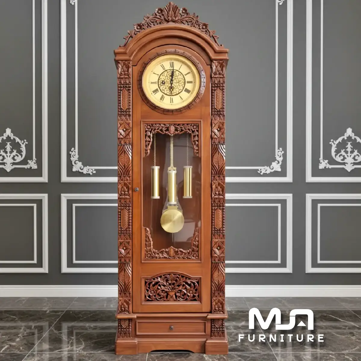 Model Almari Jam Hias Jati Jepara ini mempunyai mutu yang bagus, sebab memakai kayu jati selaku bahan baku. Sebab itu kami menjamin kontruksinya sangat kokoh serta awet. Tidak hanya kemewahan, kamu pula menemukan produk bermutu besar, sebab membeli produk mebel jepara bikinan mebel jepara asli. Saat ini ini memanglah banyak model jam hias minimalis modern di pasaran, tetapi kami masih percaya banyak yang mau mempunyai lemari jam hias klasik elegan. Kamu dapat amati rangkanya yang mewah ukiran yang hidup, dengan mahkota yang menjulang keatas di memenuhi karya seni ukir asli kota jepara.