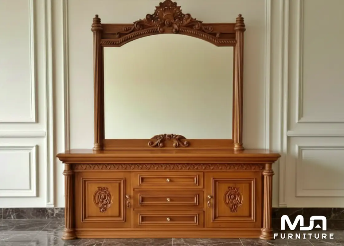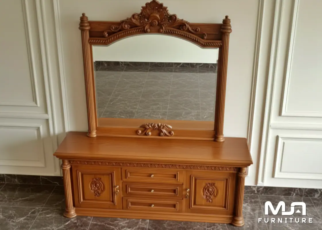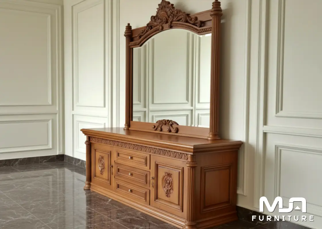 Bufet Cermin Ukiran Mewah sangat banyak peminatnya dengan desain istimewah membuat para pelanggan kagum akan kayu jatinya dan ukirannya yang bagus.