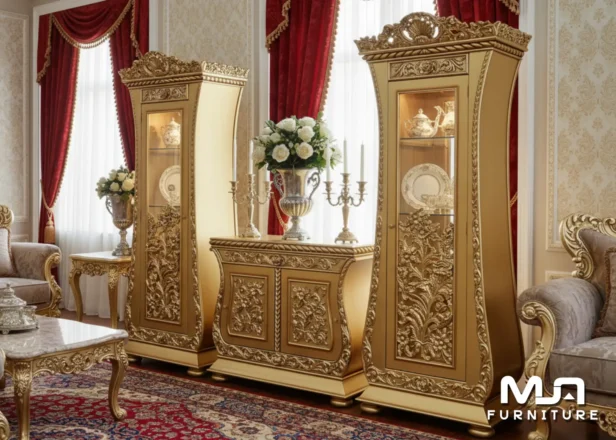 Model Bufet TV Lemari Hias Gold Klasik Jepara