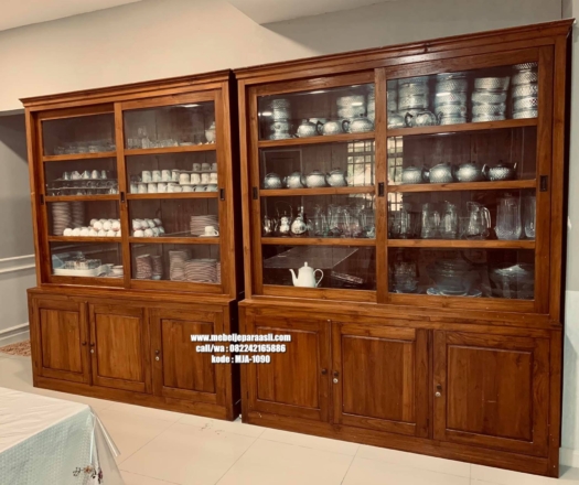 Lemari Hias Ukir Mewah produk yang masih laris di indonesia dengan model desain full ukiran dan berbahan kayu jati serta finishing natural di kombinasikan dengan loster warna hitam membuat sangat cantik dan mewah sangat cocok untuk gaya rumah klasik dan modern. Jika anda berminat dengan produk lemari pajangan atau model lain sikalan mengirim foto gambar…