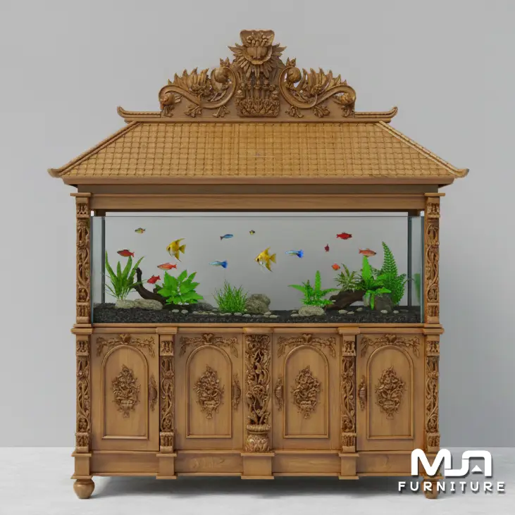 Beranda » Bufet Ukir » Jual Meja Aquarium Ikan Hias Ukir Jati Mewah Jepara