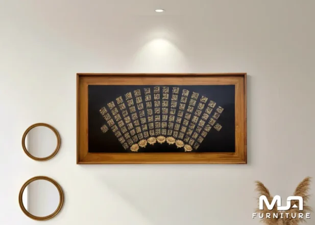 Kaligrafi Asmaul Husna adalah seni menulis nama Allah dengan menggunakan karakter–karakter khas Arab dan menggunakan kayu jati sebagai media untuk ekspresi gambar ini. Kaligrafi ini dapat menampilkan nama–nama Allah seperti Al–Quddus, Al–Muhaimin, Al–Aziz, dan lainnya dengan bentuk yang indah dan artistik. Bahan Baku Kaligrafi Asmaul Husna Kaligrafi Asmaul Husna dibuat dengan kayu jati pilihan yang berkualitas…