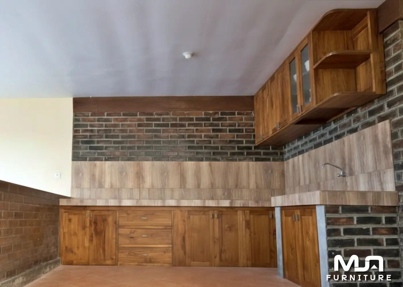 Kabinet Lemari Dapur Kitchen Set Minimalis Natural Kayu Jati Jepara Terbaru