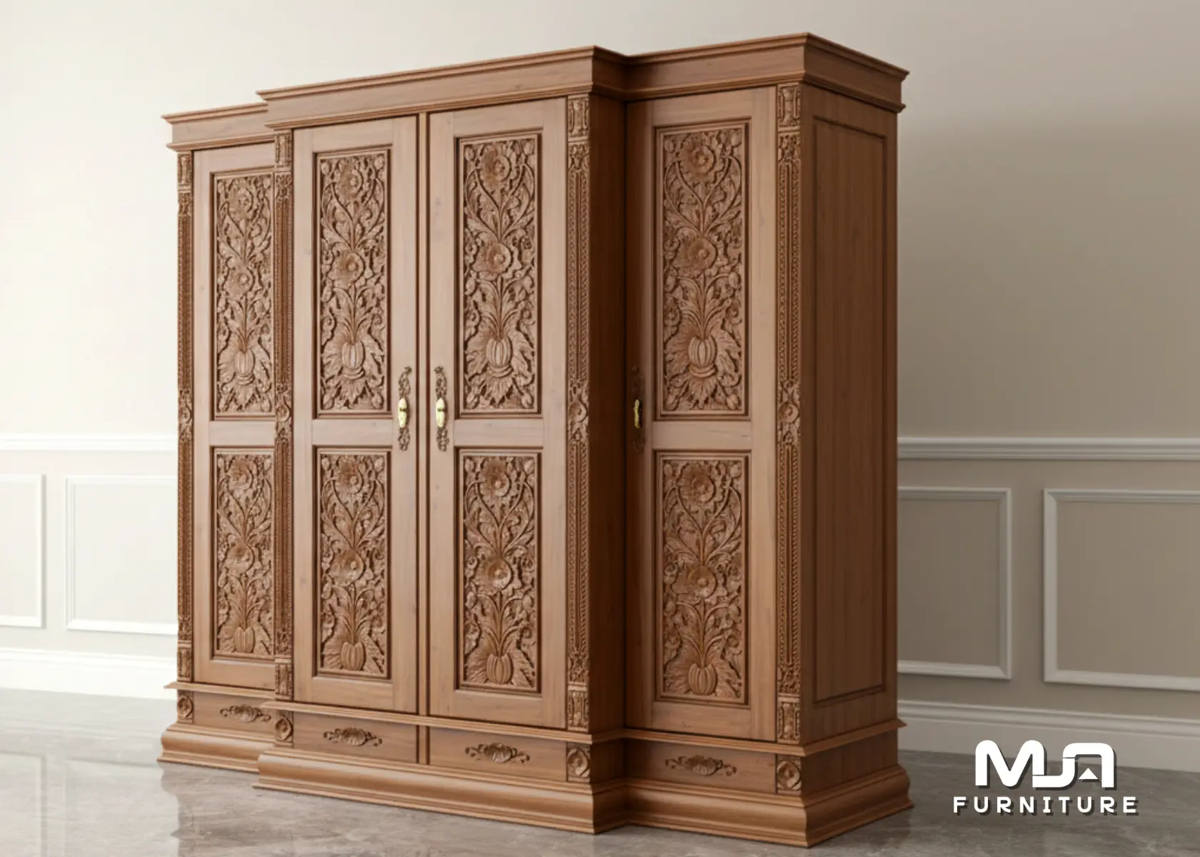 Terbuat dari kayu solid ini membuat kokoh dan juga awet produk furniture jepara Lemari Pakaian Ukiran Mewah Jepara ini berfungsi untuk merapikan pakaian keluarga anda.