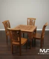 Meja Makan Klasik 4 Kursi Walnut Ukiran Jati Jepara