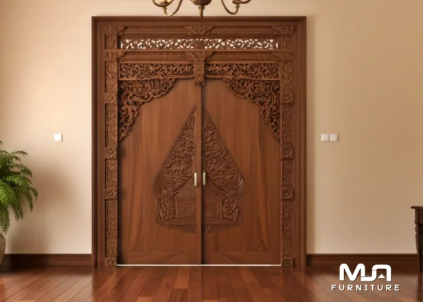 Pintu Gebyok ini sangat pas sekali buat memenuhi kebutuhan furniture pada rumah kamu. Paling utama selaku pintu rumah utama dengan konsep klasik ataupun tradisional style jawa maupun style bali. Dimana konsep rumah tersebut memperlihatkan nilai seni klasik, semacam ukiran pada produk furniture dll. Tampilannya pula sangat mempesona dengan susunan wood finishing warna walnut brown klasik…